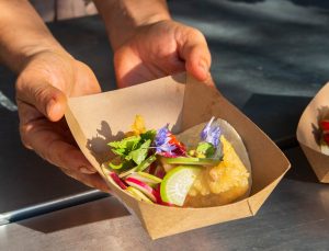 + 6 6 more images. Place taco ingredients on the table for assembly. It gives us a chance to not only eat a delicious meal together as a family, but to connect, laugh a little, and share stories from our week while we enjoy that meal. Begin by making the slaw, which is a combination of shredded red cabbage, chopped red onions, cilantro, apple cider vinegar, oil and salt. Baja fish tacos are crispy, made with beer battered fish, red cabbage slaw and creamy chipotle sauce.
